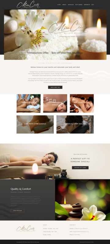Mira Cristy Wellness Massage Project Details Client:MIRA CRISTY WELLNESS MASSAGEService:WEBSITE DESIGNServices:ONLINE BOOKINGGIFT CARDS Visit Site Related Projects KeySar Rescue CharityWordPress Paws To Care Thrift Store CharityWordPress Mira Cristy Wellness Massage WordPress Indonesian Parrot Project CharityWordPress Daisy Chain Sanctuary CharityWordPress Second Acts Foundation CharityWordPress Reece Painting WordPress Monarch Butterflies WordPress Waihi Tattoo Studio WordPress Cedar Lodge Nurseries E-CommerceWordPress Hydes Pet Food E-CommerceWordPress Rottweilers WordPress
